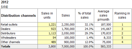 The table shows most of the possible distribution channels available.